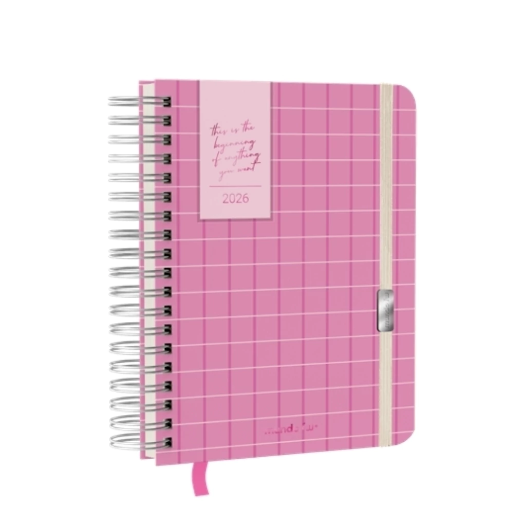 Descripción: AGENDA 2026 FW 15X21 SEMANAL PINK DESCRIPCION: Incluye: - Puntas redondeadas - Papel Bookcel de 80g - Anillado wire O - 2 planchas de stickers - 4 Cantos rebatidos - Tapa Dura - Tracker de habitos - Sobre interno - Elastico a tono - Cinta Señaladora