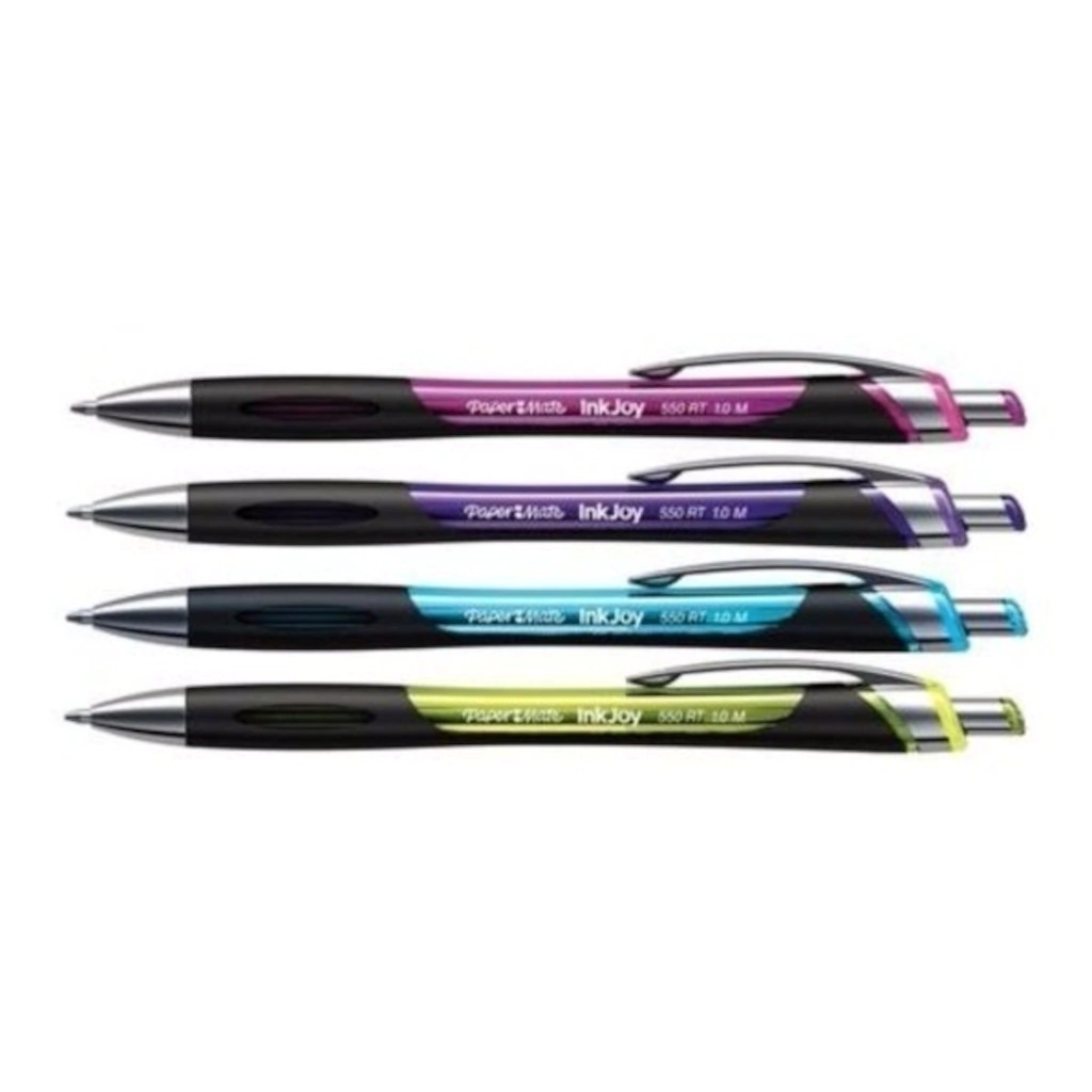 Descripción: El Bolígrafo Paper Mate InkJoy 550 RT en color negro combina la suavidad del sistema de tinta InkJoy con la comodidad de un diseño retráctil. Su punta media de 1,0 mm ofrece un trazo intenso y uniforme que seca rápido, ideal para apuntes diarios y trabajos creativos. El cuerpo contorneado de alto brillo incorpora un grip de goma que mejora la sujeción y reduce la fatiga al escribir. El mecanismo de clic proporcionado es firme y permite desplegar la punta con un solo gesto, manteniéndola protegida cuando no se usa. Especificaciones técnicas Marca: Paper Mate Línea: InkJoy 550 RT Tipo de bolígrafo: retráctil con clic Punta: media 1,0 mm Sistema de tinta: InkJoy ultrasuave de secado rápido Grip: goma integrada para mayor confort al escribir Clip: metálico resistente para sujetar en carpetas o bolsillos Cuerpo: plástico contorneado de alto brillo Color de la tinta: marrón Longitud aproximada: 14 cm Peso aproximado: 12 g