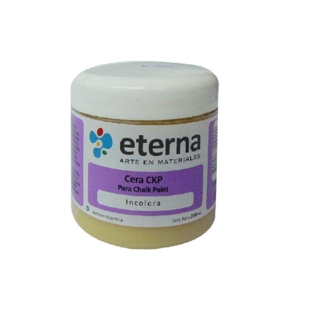 Descripción: CERA ETERNA X 200 ML CKP Descripción Cera Acabado Mate Para Chalk Paint Eterna X200ml Combinación de ceras de acabado mate especialmente formulada para terminar piezas pintadas con Chalk Paint.