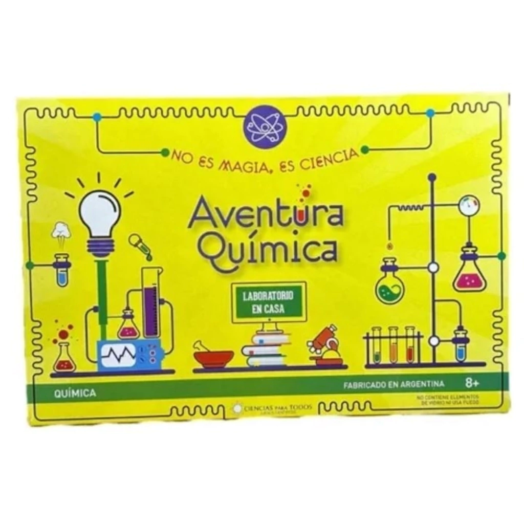 Descripción: La ciencia-aventura química es un kit de experimentos que permite explorar la química de manera lúdica. ¿Qué incluye un kit de ciencia-aventura química? Material para realizar experimentos, como bicarbonato de sodio, ácido tartárico, tizas, globos, pipeta, vasos graduados, tubos de ensayo, agitador, entre otros Una guía de experimentos