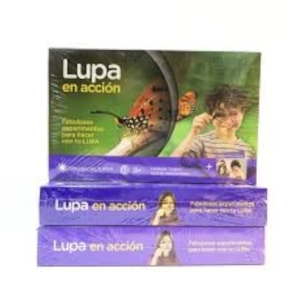 Descripción: .Ciencia-Lupa en Acción es un juego educativo que incluye una lupa y una guía de experimentos científicos. .Está dirigido a niños a partir de 8 años. .Contenido del juego Lupa, Guía de experimentos. .Objetivos del juego Fomentar la curiosidad y el aprendizaje, Ayudar a comprender procesos complejos, Generar entusiasmo para enfrentarse a un problema.
