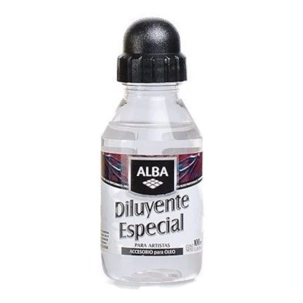 Descripción: Descripción DILUYENTE ALBA X 100 ML ESPECIAL DILUYENTE ESPECIAL - SIN OLOR 100 ML USOS: Aumenta la fluidez por lo que disminuye las marcas de pincel. Aumenta la transparencia posibilita realizar veladuras mezclado con Aceite de Lino . Disminuye el tiempo de secado. Se debe evitar usar un exceso pues disminuirá la flexibilidad de la pintura seca, con riesgo de que se produzca cuarteo y absorción de aceite por parte de sustratos poco sellados. No usar en capas superiores. Indispensable para la limpieza de utensilios usados con óleo.