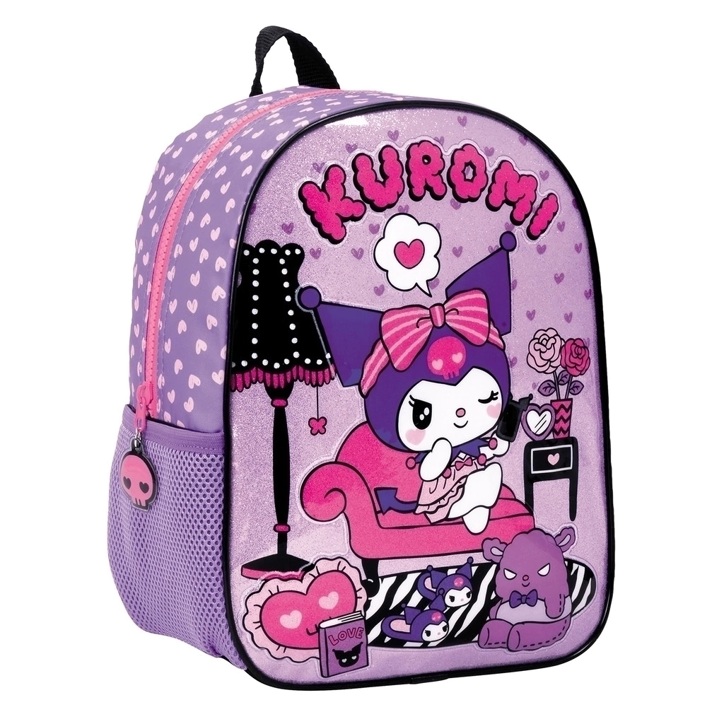 Descripción: KUROMI MOCHILA 74250 12" ESPALDA CHILL Lleva el estilo de Kuromi a todas partes con esta mochila de 12 pulgadas en tonos violeta. Su tema "CHILL" y su diseño juvenil la hacen perfecta para el día a día. Ofrece suficiente espacio para libros y otros accesorios, mientras que las correas acolchadas aseguran comodidad. Su resistente material garantiza durabilidad, ideal para el uso diario en la escuela.