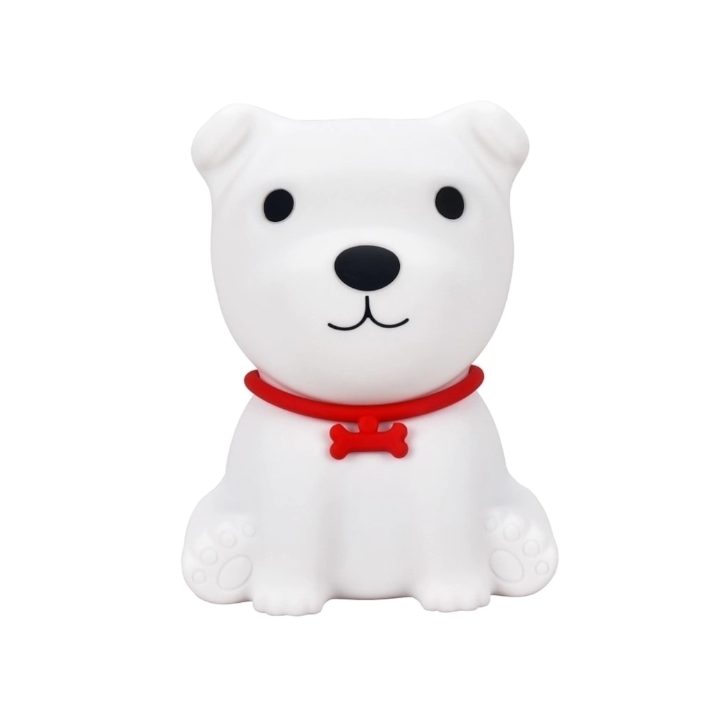 Descripción: Características de la lámpara: Diseño en forma de perrito Fabricado con material libre de BPA Recargable mediante conexión micro-USB Duración aproximada de 8 horas en modo de luz cálida estándar Duración aproximada de 6 horas en modo de luces multicolores Incluye cable USB para recarga e instrucciones de uso