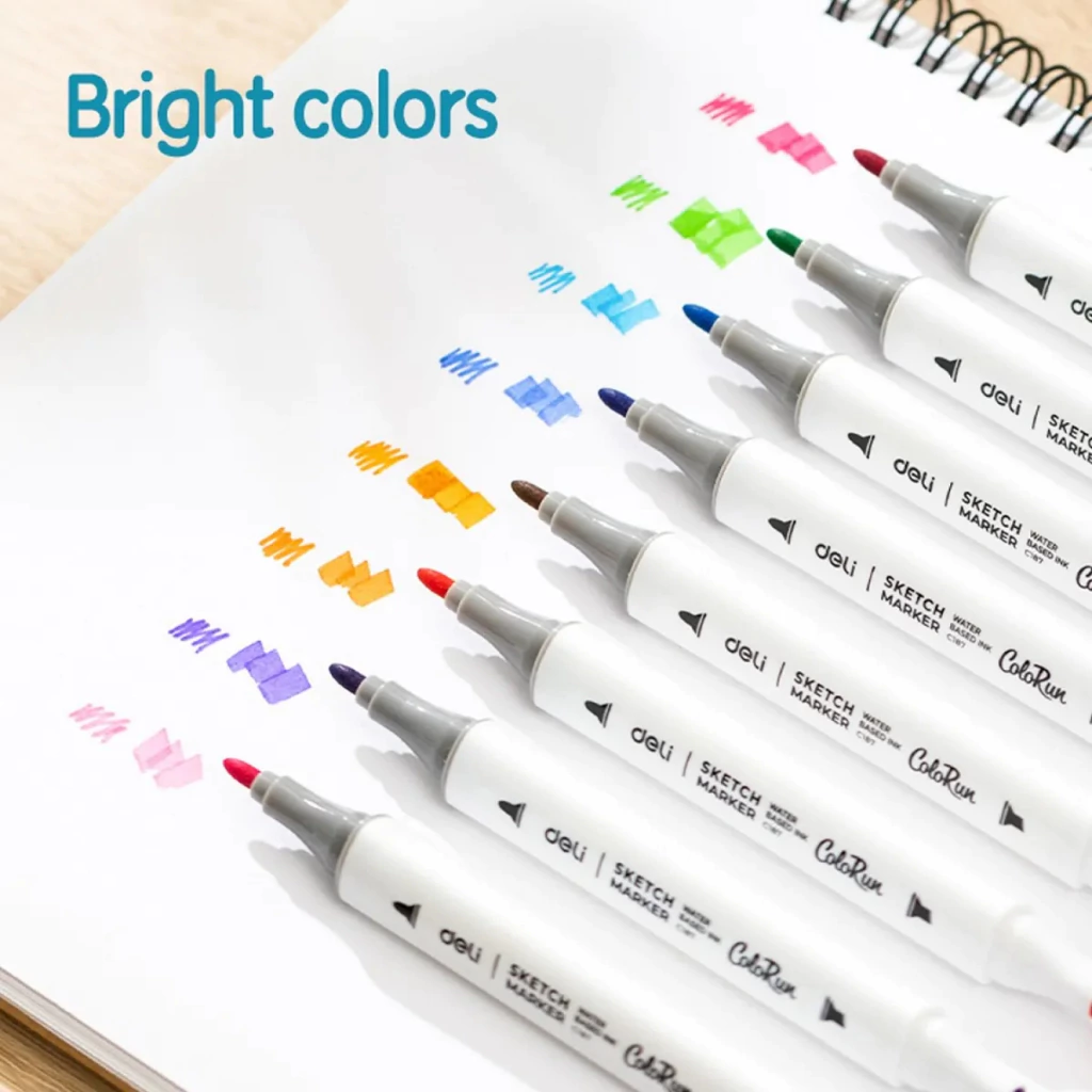 Descripción: El Marcador Deli Sketch Doble Punta al Alcohol - Box de 60 unidades es una herramienta imprescindible para artistas, ilustradores y profesionales del diseño que buscan precisión y versatilidad en un solo producto. Su formulación a base de alcohol garantiza secado rápido, trazos definidos y la posibilidad de lograr efectos de mezcla y degradado sin que la tinta se corra, lo que resulta esencial para obtener acabados profesionales. Características principales: Doble punta: Cada marcador cuenta con una punta fina para detalles minuciosos y una punta ancha para áreas de mayor cobertura o relleno. Esto permite adaptar la técnica a distintos estilos y niveles de precisión en el trazado. Tinta a base de alcohol: La fórmula alcohólica favorece una aplicación uniforme y rápida, asegurando que los colores se mezclen de manera fluida sin manchas o borrones. Packaging versátil: Con una presentación en caja de 60 unidades, tendrás a tu disposición una amplia gama de colores, ideal para proyectos colaborativos, clases de arte o estudios creativos donde se requiera diversidad cromática para enriquecer tus obras. Aplicaciones variadas: Perfecto para ilustración, diseño gráfico, lettering, técnicas de sombreado y cualquier actividad creativa que demande un acabado vibrante y preciso. Este set de marcadores te ofrece la combinación perfecta de calidad y funcionalidad, facilitando el trabajo en técnicas artísticas con un rendimiento excelente y constante.