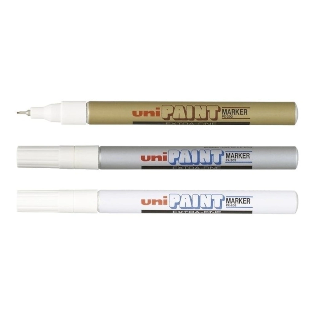 Descripción: MARCADOR UNI PAINT PX 203 0.5MM E/F ORO Descripción UNI PAINT px 203 punta ultrafina Resistentes al agua y a temperaturas de más de 250 gracias a su exclusiva tinta permanente al aceite, es permanente sobre metales - cuero - plástico - vidrio - caucho - etc Usados especialmente en trabajos industriales y también en la industria automotriz para marcar motores, neumáticos, etc, Ideales para Graffitis y arte callejero en general debido a que resisten a la intemperie, la luz y el agua