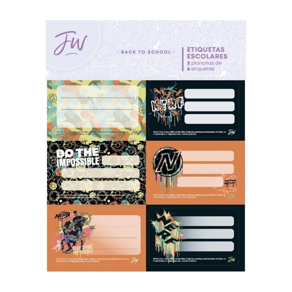 Descripción: NERF ETIQUETA X 12 FW 2 planchas por set 6 etiquetas por plancha Bolsa importada de alta calidad y resistencia Medidas: 15,5 x 15,5 cm