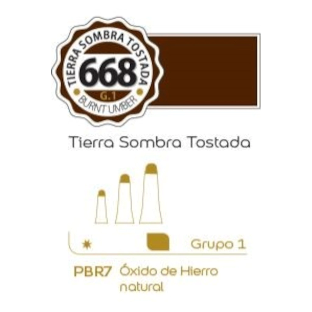 Descripción: Características: OLEO ALBA 18CC G1 TIERRA SOMBRA TOSTADA Los Oleos Alba se elaboran con aceites blanqueados y purificados de primera calidad. La mayoría de los colores están fabricados con un solo pigmento, lo que posibilita obtener colores más limpios por mezcla de los mismos. Todos los pigmentos utilizados son molidos en la cantidad de aceite requerida para asegurar las cualidades de adherencia y cohesión que garanticen el resultado de la obra realizada y de alta resistencia a la luz. . El resultado es una pintura de consistencia "mantecosa" apta para trabajar tanto con pincel, como con espátula.