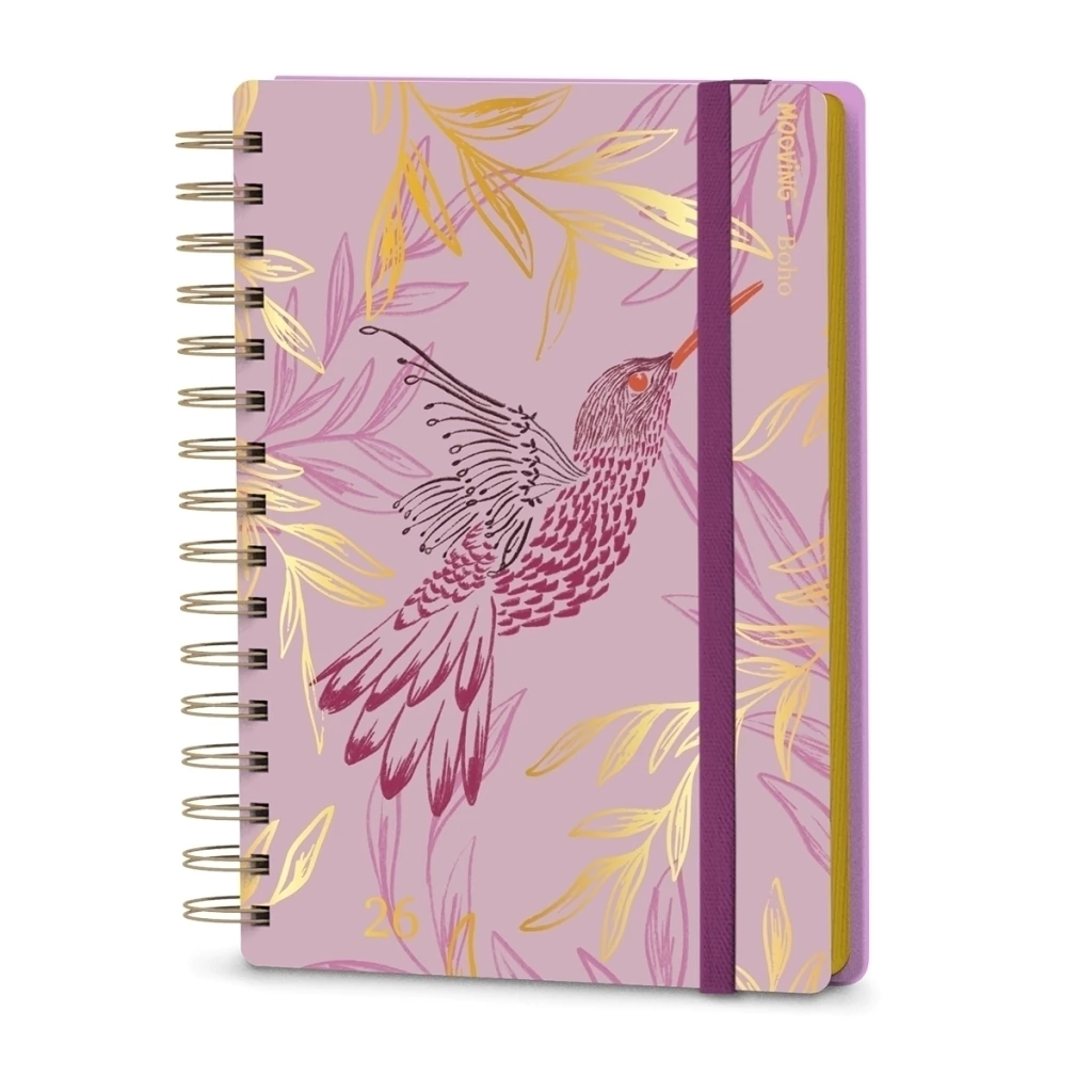 Descripción: AGENDA 2026 MOOVING N 6 DIARIA BOHO La Agenda 2026 Mooving N:6 DIARIA BOHO es una opción compacta y funcional para quienes buscan organizar su año con estilo y plasticidad. Con un diseño moderno y una encuadernación espiralada que facilita su uso,esta agenda es especial para estudiantes,profesionales y cualquier persona que desee llevar un registro detallado de sus actividades diarias. Interior full color impreso. Planificación: hoja por dia. Medida 10x50 cm Paginas de notas sobre de papel impreso. 1 plancha de stikers full color con stamping oro Bookmark de PP con stencil. Caratulas mensuales con mylar full color con diseño en frente y dorso. Cierre con solapas con notas adhesivas. Impreso en PU Elástico y anillado a color. Bajo licencia y con la calidad de Mooving Argentina. Tamaño final A6 14,8 x 10,5cms