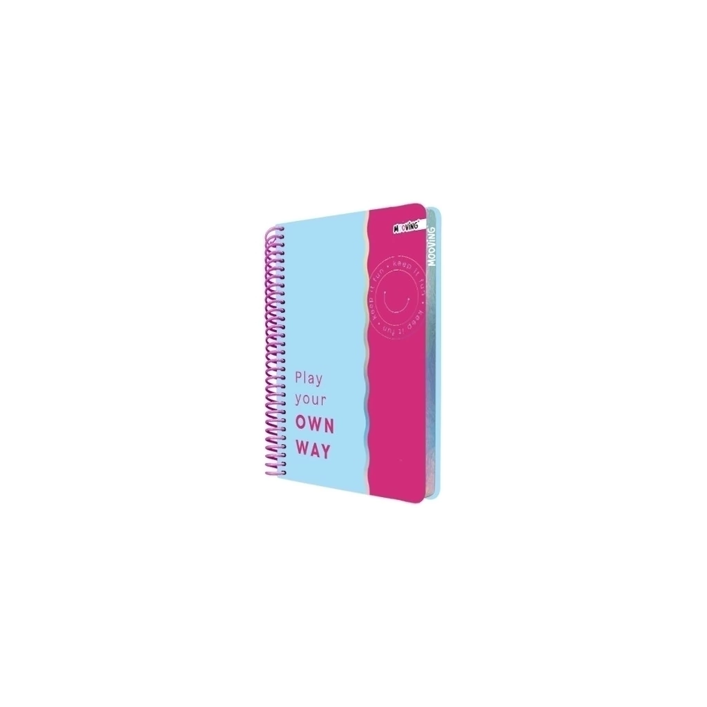 Descripción: PASTEL BLOCK CUADERNO MOOVING PREMIUM POCKET 96 HOJAS RAYADAS DE 80 G, PREPICADAS Y CON DISEÑO PERSONALIZADO EN FRENTE Y DORSO. 1 PÁGINA DE STICKERS. PUNTAS REDONDEADAS. EDGE A COLOR CON LOGO. ESPIRAL PLÁSTICO. RETIRO FULL COLOR. CARTÓN DE 2 MM. 12X14,5 CM