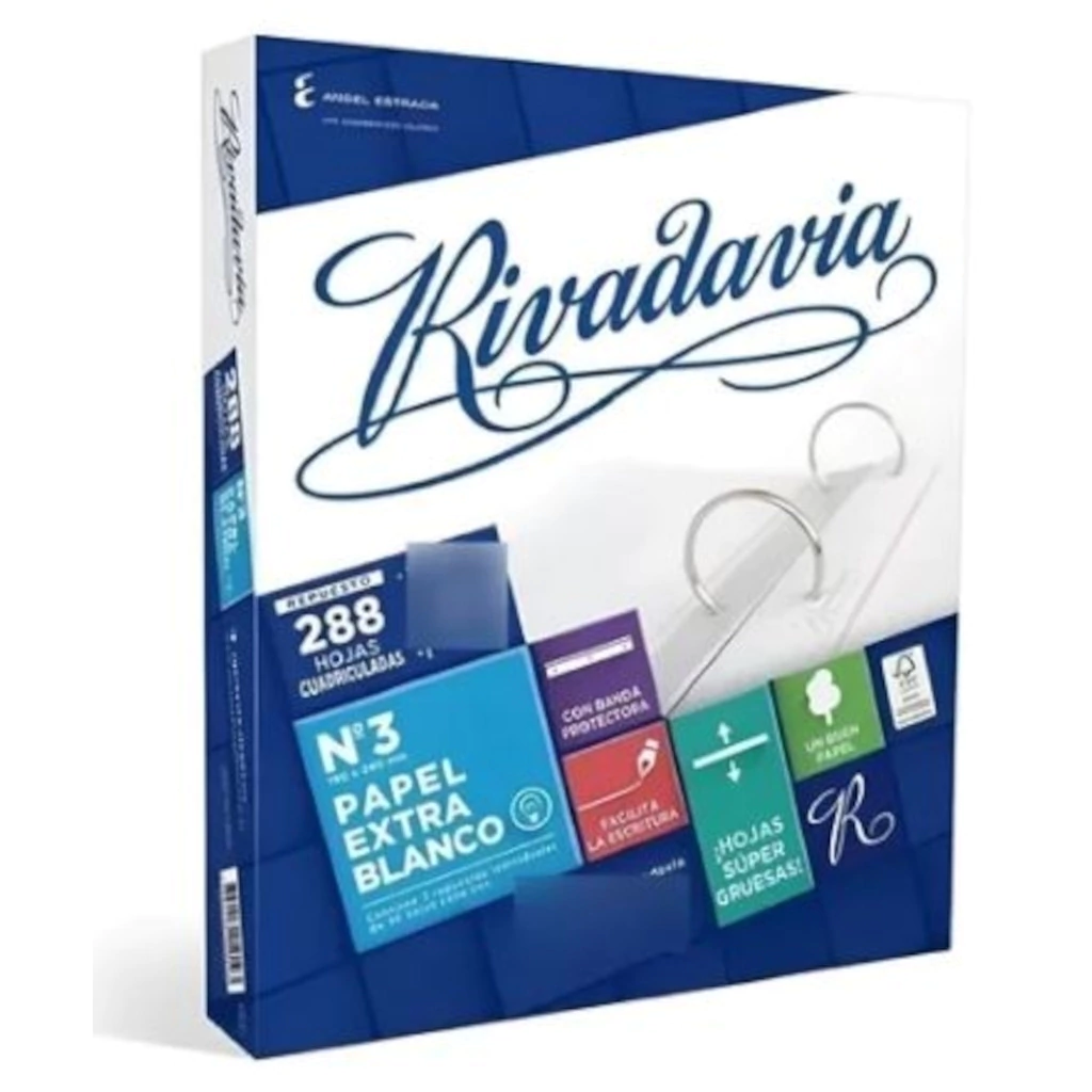 Descripción: REPUESTO N 3 RIVADAVIA 288 HS CUADRO EXTRA BCO Este producto es un repuesto escolar de la reconocida marca Rivadavia, una marca de confianza en el ámbito escolar y profesional. El modelo es el 'Extra Blanco', que se destaca por su papel de alta calidad y su color blanco puro, ideal para aquellos que valoran la nitidez y la claridad en sus escritos. El repuesto N 3 tiene un tamaño perfecto para llevar en cualquier mochila o cartera. Además, este repuesto cuenta con una banda protectora, un detalle que marca la diferencia, ya que ayuda a mantener las hojas en perfecto estado, protegiéndolas de posibles daños. Este repuesto tiene 288 hojas cuadriculadas, lo que lo hace ideal para estudiantes o profesionales que necesitan mucho espacio para tomar notas, hacer cálculos, esquemas o dibujos. El repuesto tiene tres agujeros, lo que permite que se pueda usar en cualquier carpeta de anillas estándar. Por último, pero no menos importante, cada envase contiene una unidad, lo que significa que cada compra te proporciona un repuesto completo con 288 hojas. Este repuesto Rivadavia N 3 Extra Blanco es sin duda una excelente opción para tus necesidades de escritura.