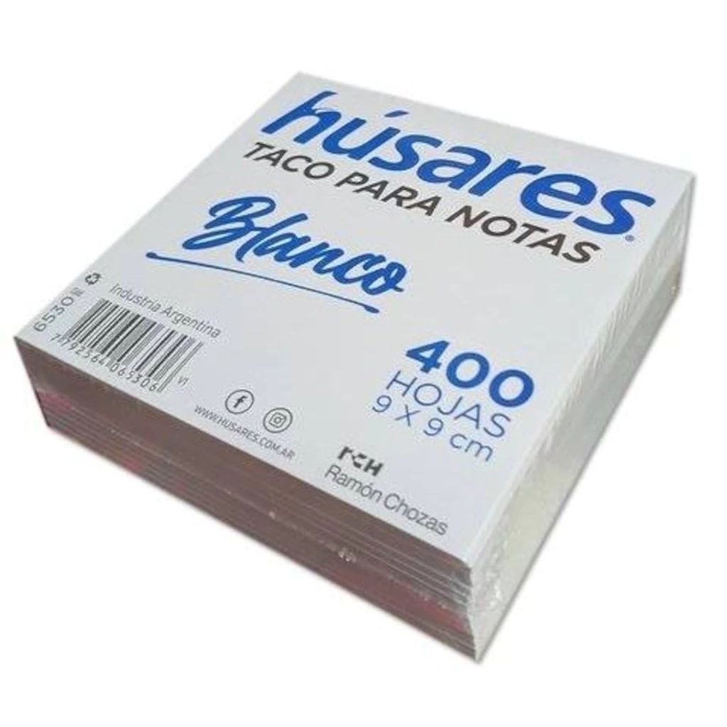 Descripción: TACO 9X9 BLANCO X 400HS HUSARES Taco de Papel Formato 9x9 Cantidad de Hojas 400 Gramaje 55 grs